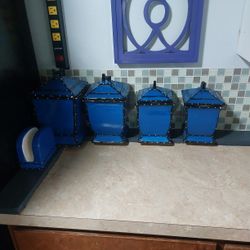 Blue Ceramic 5Pc Canister Set Good Condition $35Centralia, WA