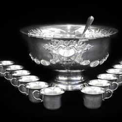 Vintage Oneida Silver Plated Holloware Castle Court Punch Bowl with 12 Cups and Ladle $500Olympia, WA