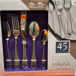 45pc Mikasa Bravo Satin Stainless Flatware Set$120Olympia, WA