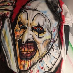 Custom Airbrushed T-Shirt – XL – Art the Clown (Terrifier) – One-of-a-Kind Horror Fan Apparel