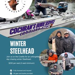 Guided Winter Steelhead Trip$250Toledo, WA