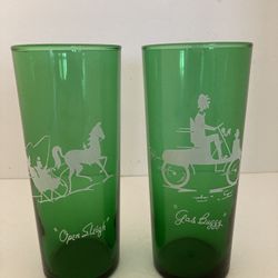 Vintage Anchor Hocking Green Drinking Glasses Open Sleigh And Gas Buggy$10Chehalis, WA