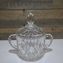 ANCHOR HOCKING PRESCUT Clear Glass PINEAPPLE SUGAR BOWL - Handles and Lid -$13Yelm, WA