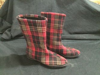 Like new Eskiloo red/blk plaid boots, wms 7.5$15Centralia, WA