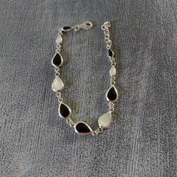 Sterling Silver Mother Of Pearl Bracelet/Black Agate 7+1"$39Centralia, WA
