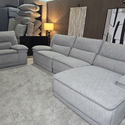 Ashley 4 Piece Power Recliner and Power Headrest Sectional With Right Arm Chaise Light Gray$950Olympia, WA
