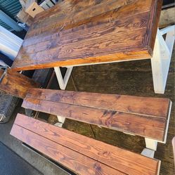 rustic farmhouse-style dining table set featuring a stained wood top and white base$575Vader, WA
