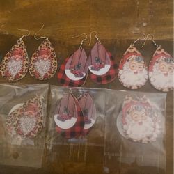 New Christmas Faux Leather Santa Leopard Buffalo Check Earrings $10Chehalis, WA