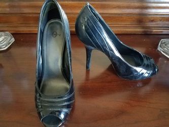 Black patent leather peep toe pumps, size 10$15Lacey, WA