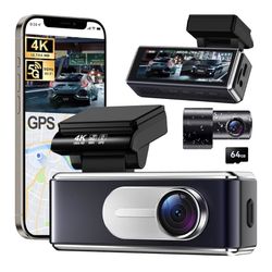 Dash Cam Front and Rear - 4K HD Dual Dash Camera for Cars, Built-in 5G WiFi GPS, 64GB Card, Dashcam with 3.2" IPS Screen, UHD Night Vision, HDR, App C$60Seattle, WA