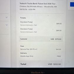 8/5/26 Tedeschi trucks band: Chateau Ste Michelle 2 tickets$100Redmond, WA