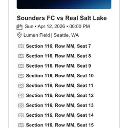 Sounders vs RSL Apr.12th sec241 row K seat 1,2 $70 for both OBO$70Renton, WA
