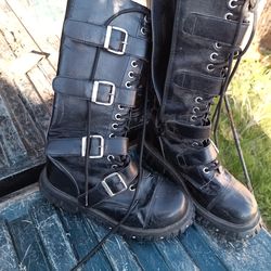 TUK Anarchic 2002 Goth Industrial Punk "Leather" triple Buckle Black Combat Boots * Size 10 mens$120Everett, WA