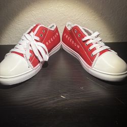 Red And White Canvas Sneakers With A Bold Freedom Design$19Kent, WA