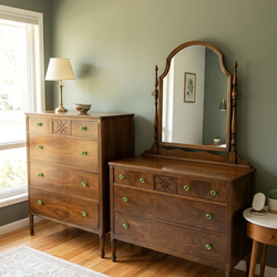 Stunning Vintage Walnut MCM Bedroom Set - Tallboy & Dresser w/ Rare Green Glass Knobs$1,200Mountlake Terrace, WA