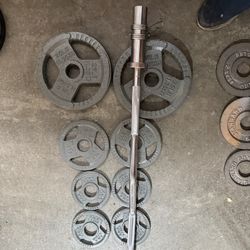Barbell + Weight Plates: Total 105 Pounds $100Woodinville, WA