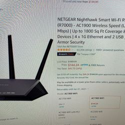 Nighthawk Smart wifi router R7000$65Redmond, WA