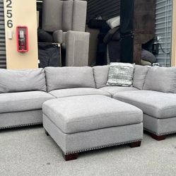 Gray Linen Sectional Couch And Ottoman $700Seattle, WA