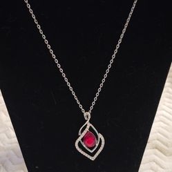 Long Silver Necklace W/ Red And Clear Crystals$4Renton, WA
