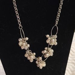 Clear, Pearl And Silver Beads Necklace With Earrings $4Renton, WA