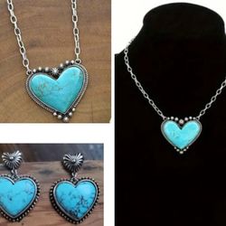 TURQUOISE HEART PENDANT NECKLACE & EARRINGS SET$15Bothell, WA