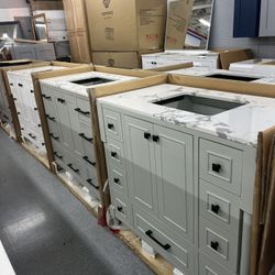 Bathroom vanity cabinet 36” solid mango Quartz top with sink and backsplash $800Federal Way, WA