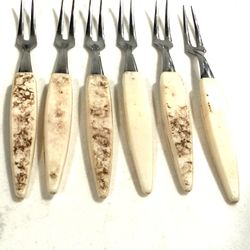 Vintage Mid Century Cocktail Appetizer Forks Stainless Steel Tines Thailand Floating Market in Original Box $10Tacoma, WA