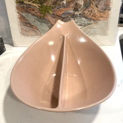 Monterey California Pottery Mid-Century Modern (MCM) Divided Fishtail Style Bowl Pink Taupe with Speckles - see below Chip Under the “tail” which is $15Tacoma, WA