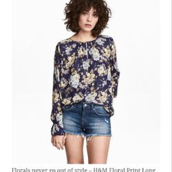 EUC H&M Floral Print Long Sleeve Blouse - Navy/Floral, 4/Small$15Renton, WA