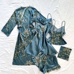 Women’s Plant Print Satin Pajama Set With Belted Robe $40Seattle, WA