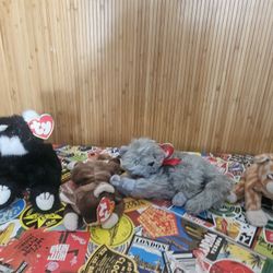 TY Beanie Baby Cat Lot β 4 Cats (Percy, Pounce, Amber, Beanie)