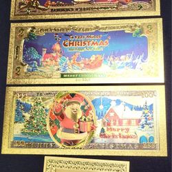 3 New Christmas Gold Foil Novelty Dollar Bills $100 And $2$15Bonney Lake, WA