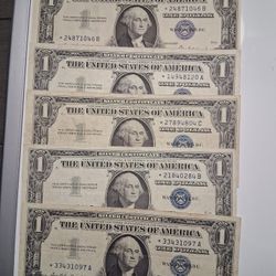 (5)1957 $1 UNITED STATES SILVER CERTIFICATE STAR NOTE $60Lewis Mcchord, WA