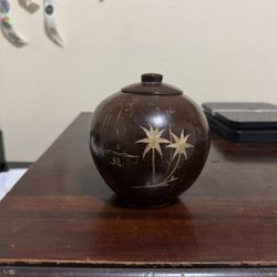 Vintage Carved Souvenir Coconut W/Lid Palm Trees Pacific Tropical Island Hawaii$25Tacoma, WA