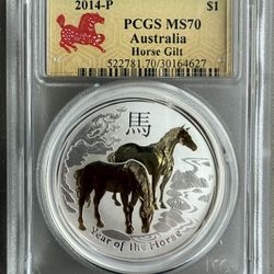 2014-P PCGS MS70 AUSTRALIA HORSE GILT 1oz SILVER COIN $100Seattle, WA