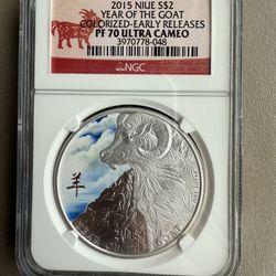 2015 NGC PF70 ULTRA CAMEO YEAR OF THE GOAT 1oz COLORIZED SILVER COIN $100Seattle, WA