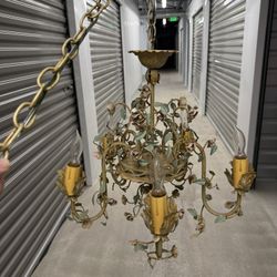 vintage Regency gilt floral chandelier, likely from the 1940s, featuring a floral tole design with hand-finished floral and leaf motifs. $500Orting, WA