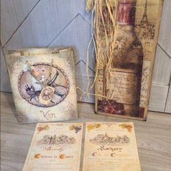 Wine Decor. Wall Hanging And Two Pieces Of Art To Frame. Gift Bag Too$20Puyallup, WA
