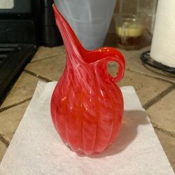 Vintage Lefton Red Orange Swirl Hand Blown Vase Pitcher Swung Glass Art$32Graham, WA