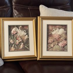 Vintage handmade 3d paper tole picture,swans and lotus Set Of 2 $70Federal Way, WA