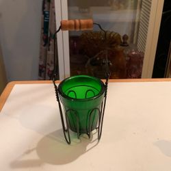 Vintage Votive Holder With Wire Holder Basket with Wood Handle$12Graham, WA