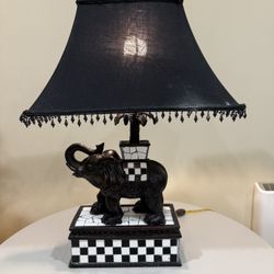 Vintage. Antique Black Elephant Table Lamp w/ Checkered Base & Tassel Shade – Safari Decor$100Tacoma, WA