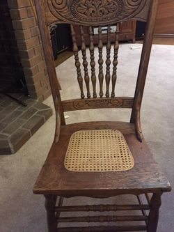 Old antique ornate solid wood chair with wicker seat bottom$50South Hill, WA