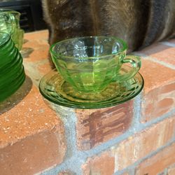 28 Cups/12 Saucers - 1930's Anchor Hocking Block Optic Green Glass $235Federal Way, WA