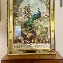 Art Deco large gold mirrored frame peacock print $150Bellevue, WA