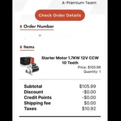 Starter Motor 1.7KW 12V CCW 10 Teeth$75Tacoma, WA