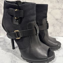 Tory Burch Oren Black Peep Toe Ankle Booties Boots Leather & Canvas High Heel$125Snoqualmie Pass, WA