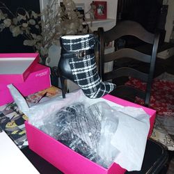 Shoedazzle. Tweed Black/White Upper Buckle Mid Boot Heal. Size 9$20Gig Harbor, WA