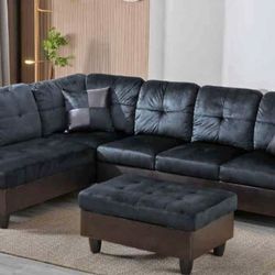Midnight Black Microfiber Sectional Couch And Ottoman$700Renton, WA