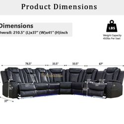 Power Electric Black Leather Fully Reclining Sectional Couch $1,400Seattle, WA